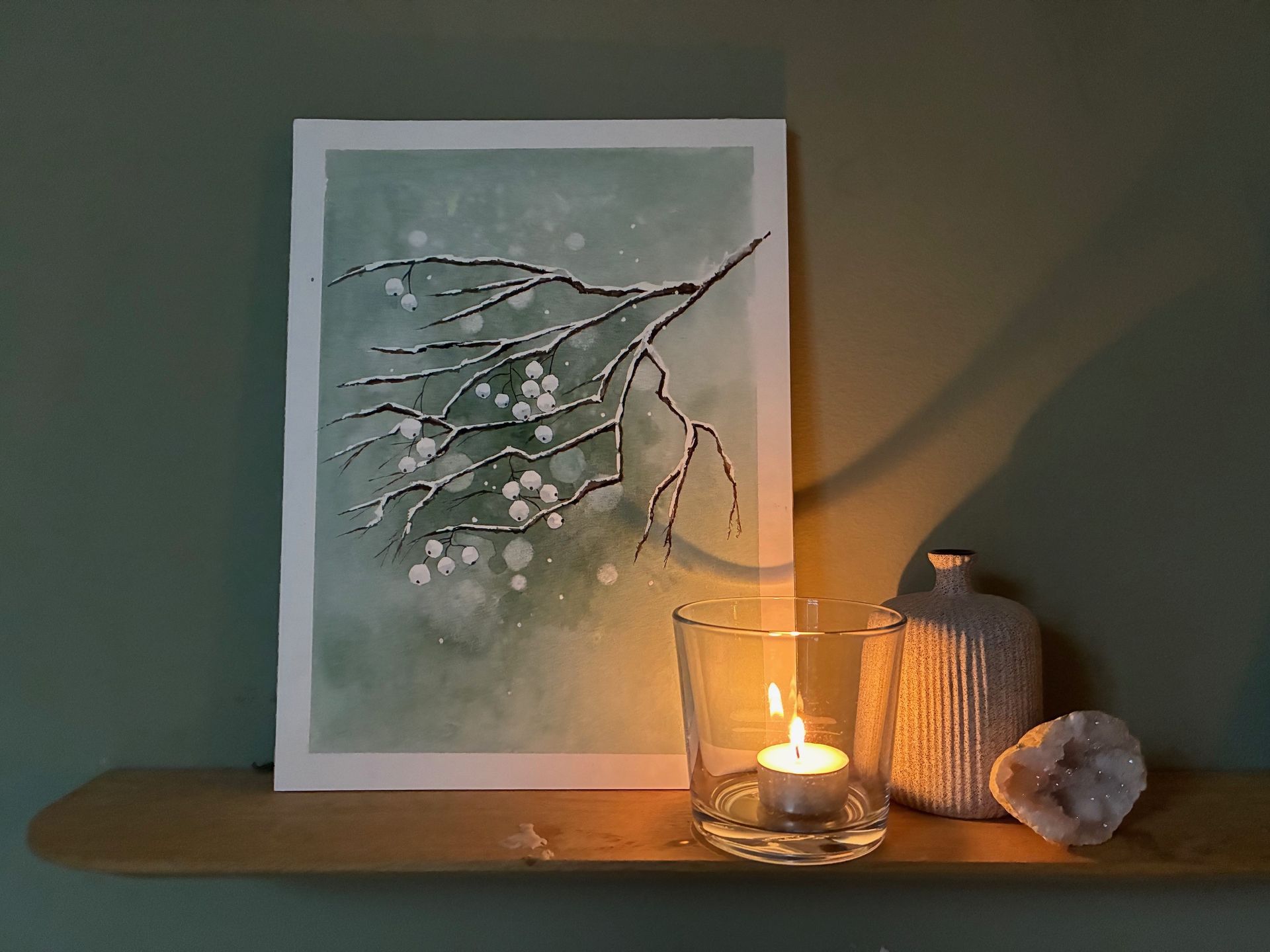Wil je ook zo'n leuk, sfeervol kunstwerkje maken? Inschrijven doe je door een e-mail te sturen naar info@tekenstudiofluitenkruid.nl ovv winterse tak en de betreffende datum.